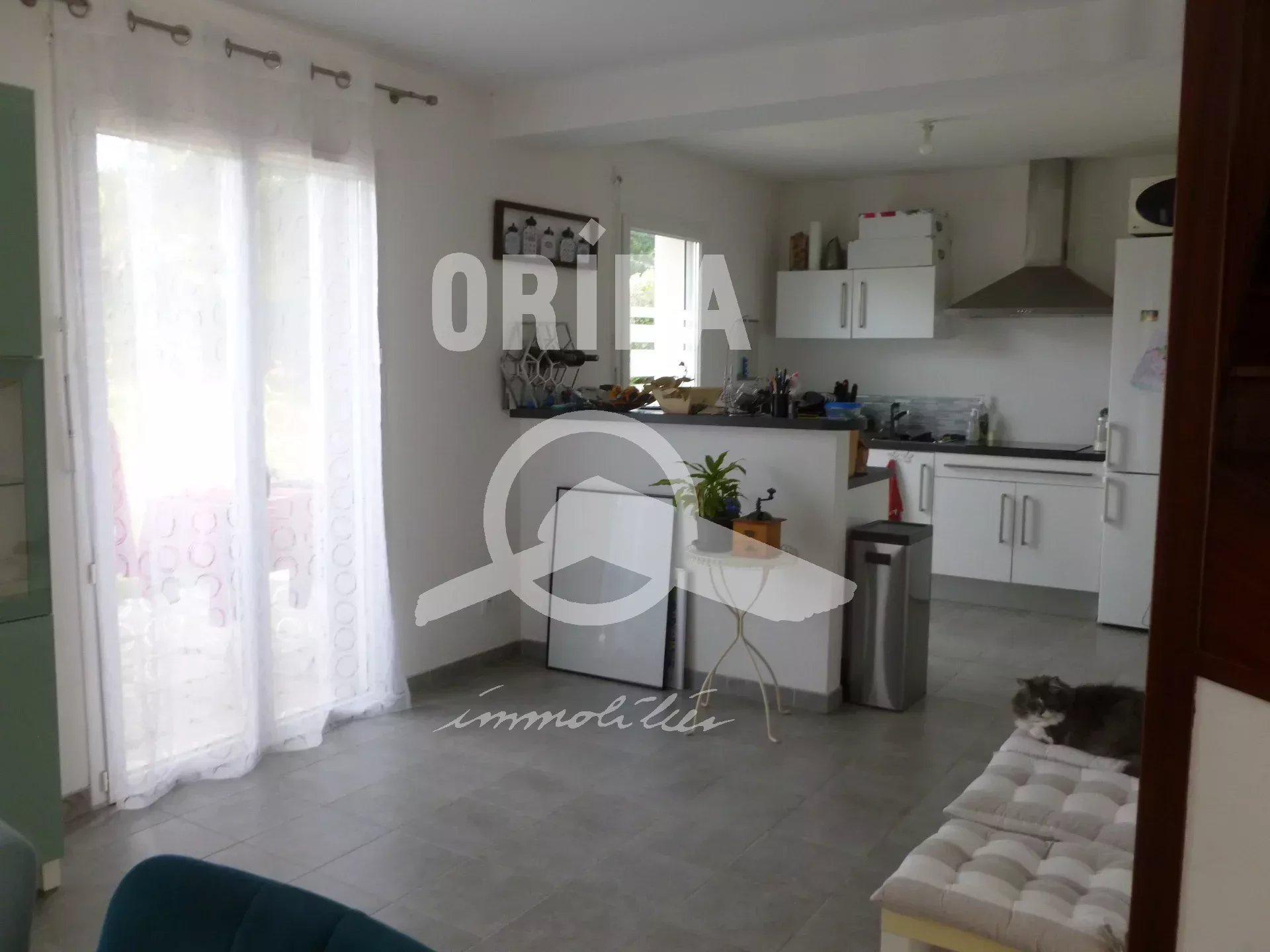 Une maison en très bon état comprenant: Entrée avec placard, séjour repas, cuisine ouverte par passe-plat aménagée et en partie équipée (fou, plaque et hotte), dégagement, wc, buanderie. Etage: dégagement, trois chambres avec placards, une suite parentale avec salle de bains, une salle de bains. Garage. ST: 326m².